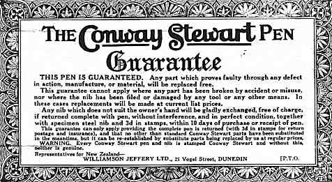 Note that the New Zealand Guarantees were generally identical to the English versions, unlike the Australian ones, with the exception of the two immediately below. New Zealand Conway Stewart items generally have the New Zealand agent's details on the instruction sheet side.